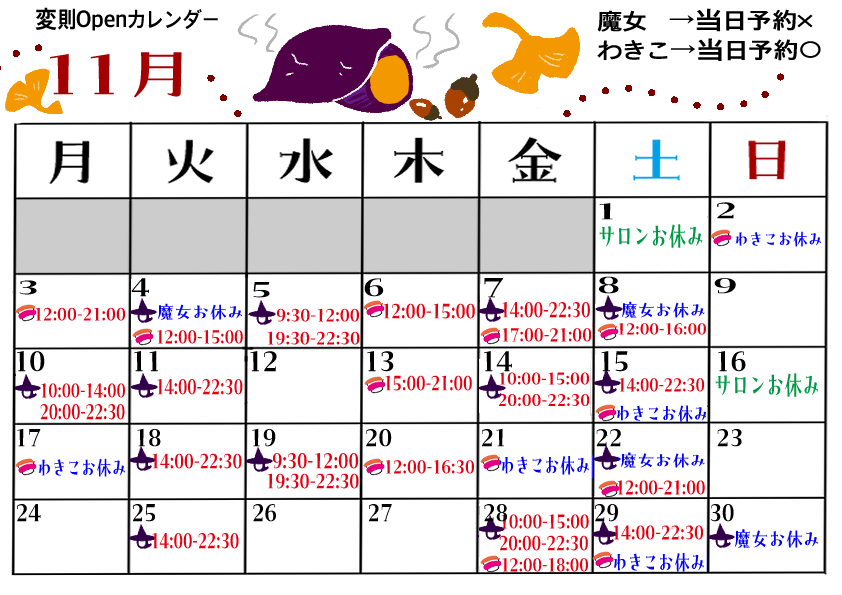 🌈予約は、わきこちゃん🍣と魔女🧙両方が揃っている日を選んでください