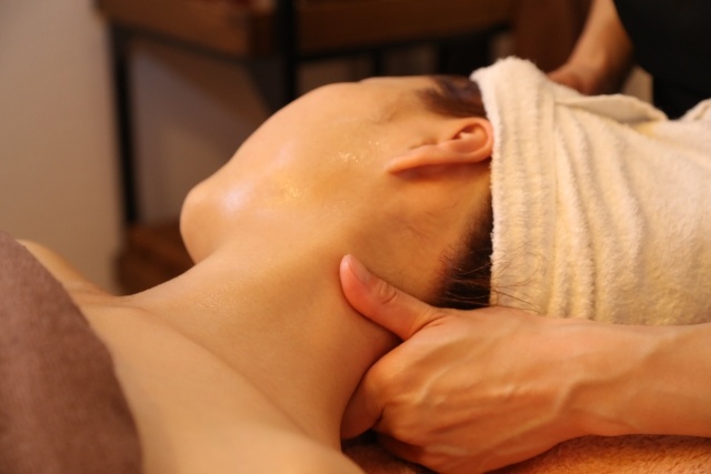 強めの圧でデコルテ周辺とその上をもみほぐしさせていただきます😄✨