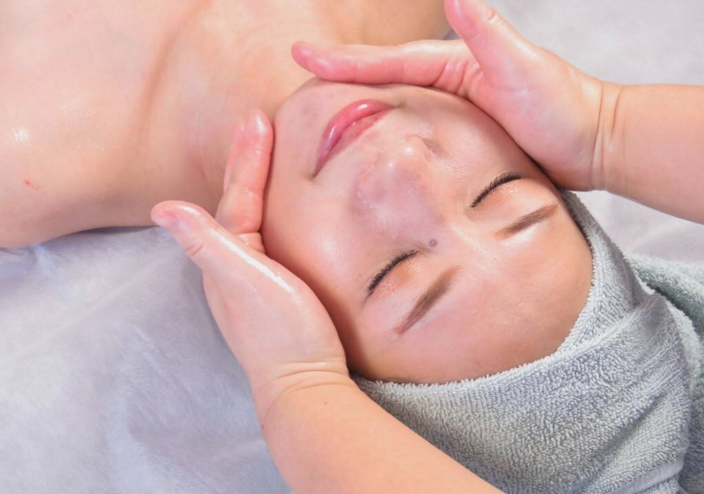 お顔の筋肉をほぐしていくメニューですが、気持ち良すぎて寝てしまう人も💤